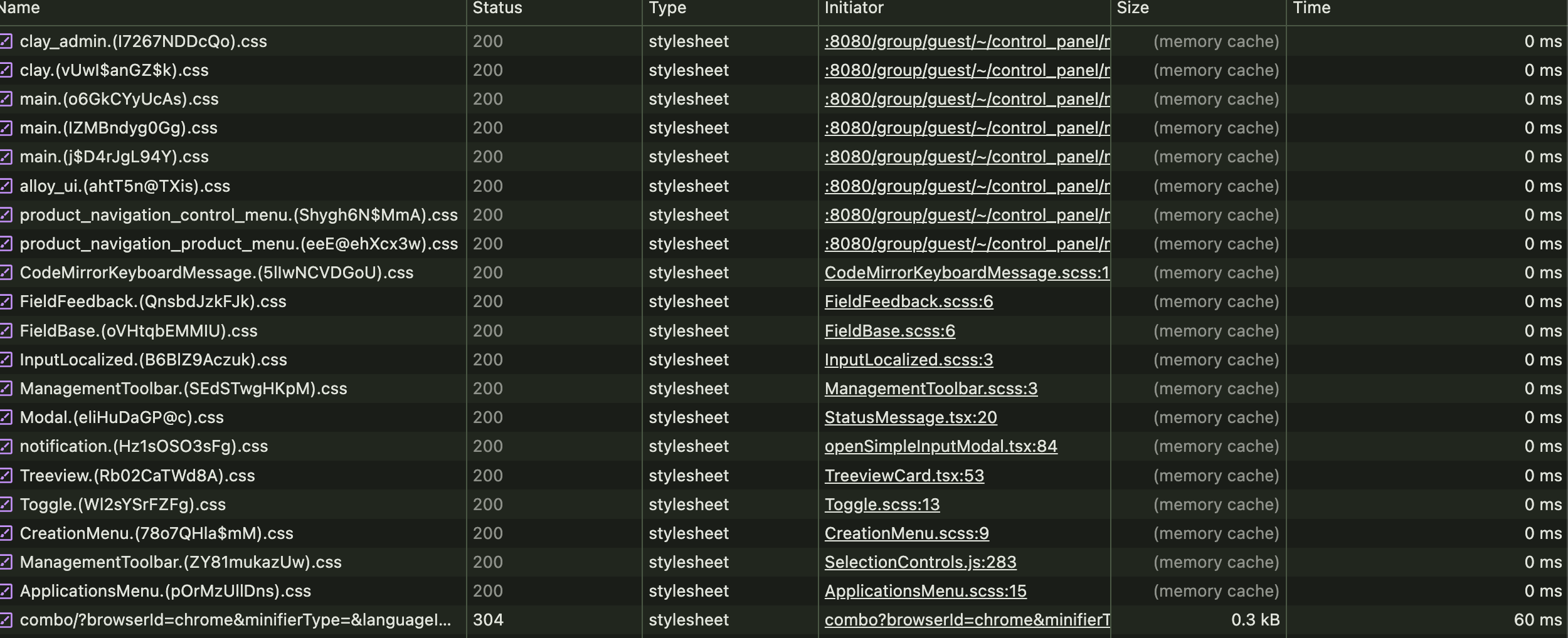 From now on most CSS files in Liferay have hashed file names at build time. For example, a clay.css file may appear at run-time with a randomly generated hash value in the name, like clay.(tvERyCVfuRc).css.