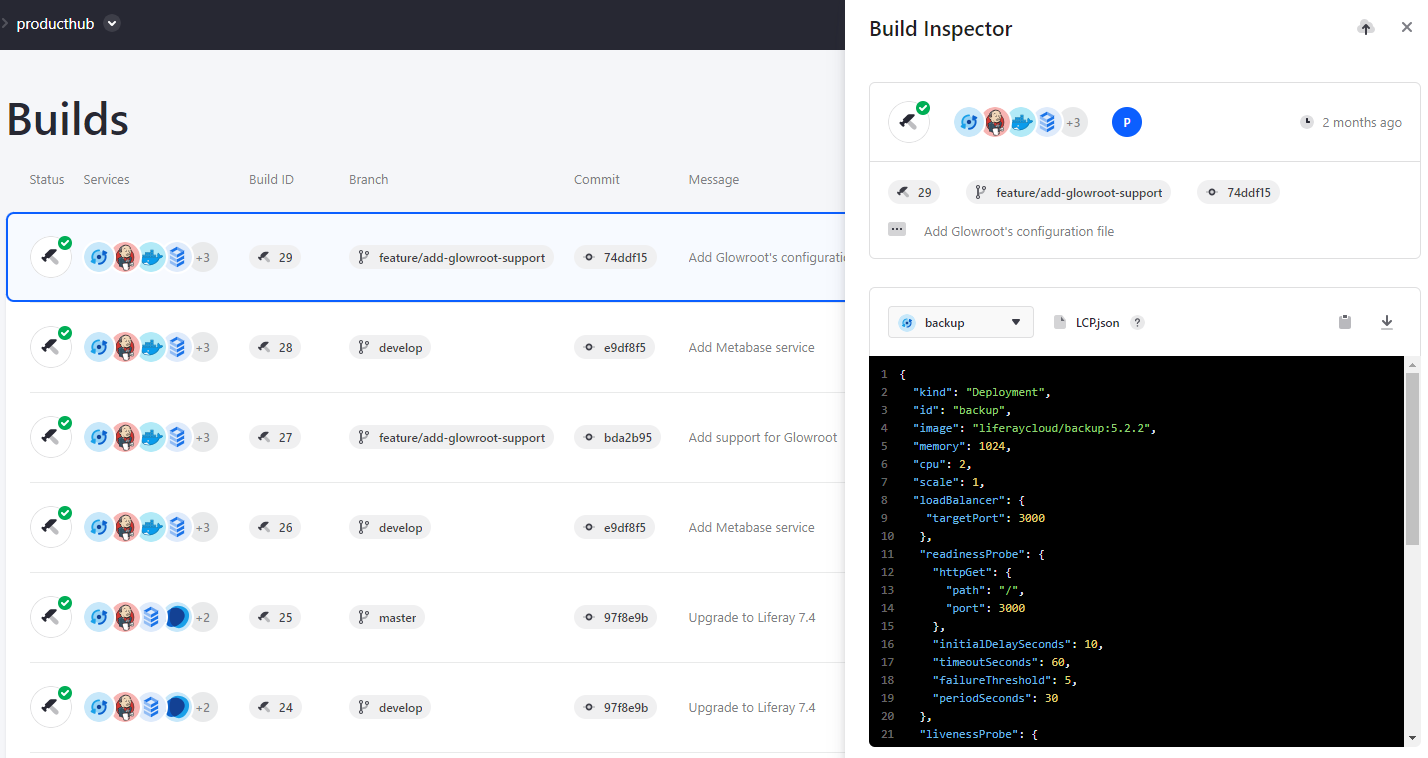 In the latest update, we've enhanced the visibility and accessibility of the LCP.json configurations for each build on the Liferay Cloud platform. Users can now directly view the LCP.json file for any build, aiding in easier troubleshooting and configuration verification. For added convenience, the interface provides options to download the configuration, copy it to the clipboard, or deploy a successful build. This update aims to streamline the user experience and expedite the support process.